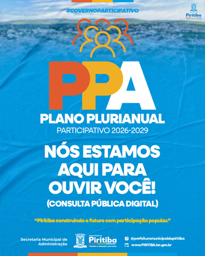 O Plano Plurianual 2026-2029 está sendo construído com a força da nossa gente — e sua voz pode definir as prioridades dos próximos anos!