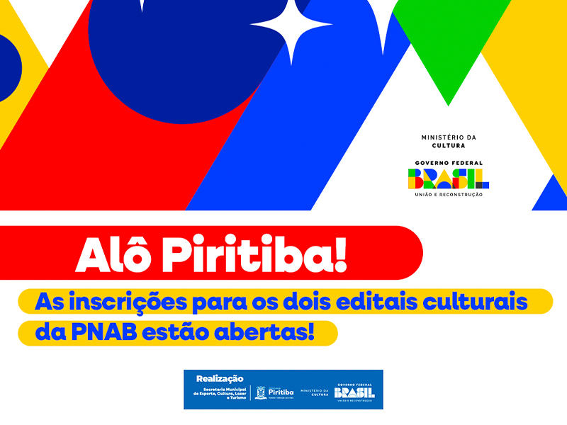 Piritiba está com inscrições abertas para dois importantes editais culturais da Política Nacional Aldir Blanc, fortalecendo a arte, valorizando talentos e ampliando oportunidades para quem faz a cultura acontecer em nosso município.🎶🧵